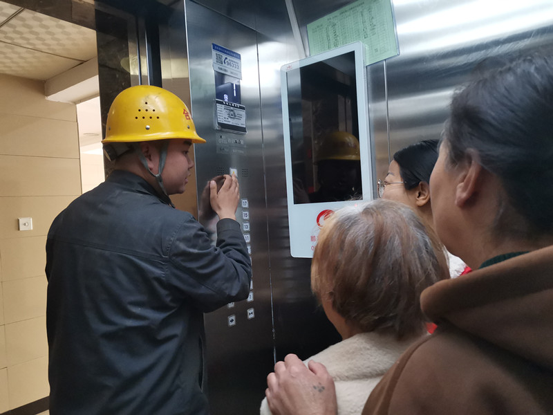 在演练前,电梯维保公司为在场工作人员及小区居民讲解了如何安全使用电梯、被困电梯时的自救及救援措施。