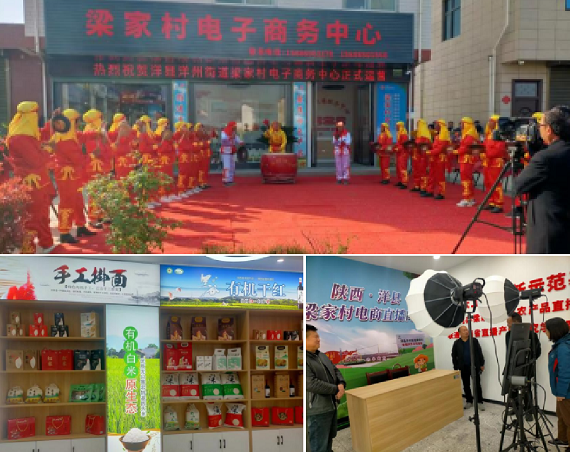 梁家村电子商务中心是我县首个村级电子商务中心。中心依托梁家村独特的自身优势与便利的地理位置而立,利用联通公司技术、人力等资源优势,开发建设农产品展厅及电商直播间,将数据分析、产品展示、商务洽谈、直播带货等多种功能集于一体,真正实现线上获客、线下销售模式。拓宽周边有机稻米,小龙虾养殖等销售渠道,增加农户经济收入。在运营模式上,梁家村电子商务中心以村股份经济合作社为主体,并建立监督委员会,设立台账,村集体年预期收益达10万元,每年决算后向村民公示并按合作社成员股份份额进行分红。