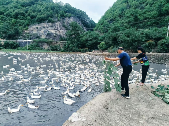 据草坝河村党支部书记庞树安介绍,在金水镇党委和镇政府的大力支持下,草坝河村积极探索扩宽村级集体经济的增收渠道,利用3亩荒废的鱼塘发展肉鸭养殖基地,肉鸭养殖饲养周期短,160~165天一批次,一年可出栏2批次。今年4月,草坝河村肉鸭养殖基地第一批生态鸭出栏,该批次养殖肉鸭近3000只,收入6万余元。现在池塘中的3000多只已是今年第二批待出栏的肉鸭,预计可为村集体经济带来7万元的收入。
