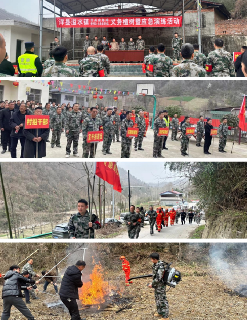 3月12日,在第47个植树节之际,溢水镇在西河村委会片区统筹开展“防火、防灾、造林”于一体的森林防灭火应急演练、地质灾害避险应急演练与全民义务植树活动。溢水镇政府、派出所、卫生院,各村党支部书记、第一书记、西河村干部和护林员共120余人参加活动。