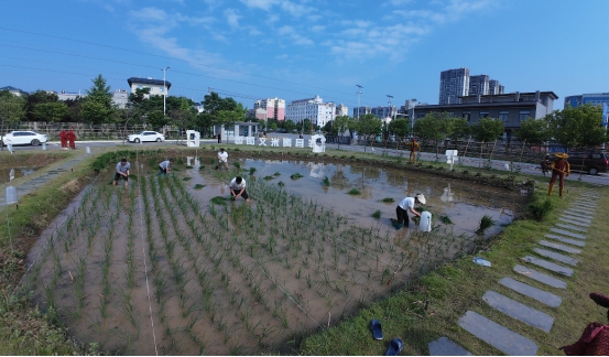 农耕体验区水田波光粼粼,再现"手把青秧插满田、农耕文明传千年"的诗意劳作场景。