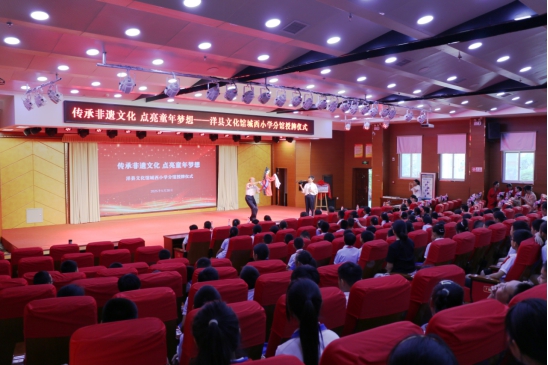 非遗进校育新苗文化传承谱新章。在城西小学三百名师生的见证下,洋县"校园非遗文化分馆"正式挂牌,此刻成为非遗活态传承的创新试验田。国家级非遗项目“洋县汉调桄桄”、省级非遗项目“洋县杖头木偶戏”在此交织出一曲古今对话的文化交响。非遗传承人现场表演汉调桄桄、杖头木偶绝活绝艺,身着汉服的木偶担水换肩、脱衣服、耍纱帽、吹胡子等戏剧情节精彩呈现,打造“听得见、看得着、摸得到”的零距离的非遗传承体系。让这种“沉浸式传承”在校园沃土中萌发新芽。