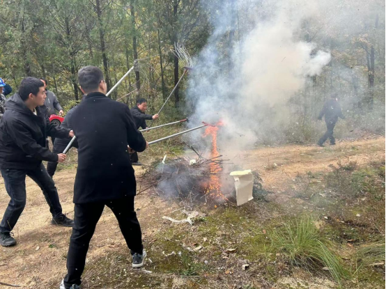 为进一步提升全镇森林火灾应急处置能力,切实增强广大干部群众的防火安全意识,筑牢防火安全防线,2025年11月10日,我镇组织全体机关干部、应急扑火队、施工企业、护林员及部分村民代表,在关岭村一组贯顶梁成功举行了一场贴近实战的年度防火应急演练。