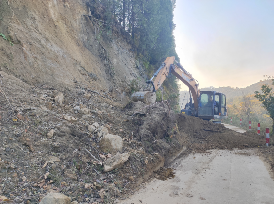 12月2日汉中交投集团党委书记李刚亲自带队到垭垥村调研道路损毁情况,向村民了解日常出行路线及通行需求,与工程技术人员、村两委、群众代表现场研讨、确定方案,要求集团子公司汉中公路工程机械化有限公司承担维修及清理道路塌方任务,并承担修复道路所需机械设备及所有费用。帮扶责任扛在肩,民生需求放心间,汉中交投集团立刻行动,安排机械设备两天内进场,并配备技术人员,历时一个星期,共清理塌方十余处,处理悬空路面50米,修理路面近3公里。在实施过程中,驻村工作队与村两委主动靠前,积极配合协调,全程跟踪监督施工进程,确保道路安全隐患完全消除。