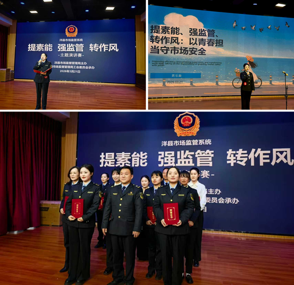 此次演讲比赛的成功举办,既为干部职工提供了展示自我、交流提升的平台,也进一步统一了思想、振奋了精神、锤炼了作风。全系统干部职工纷纷表示,将把比赛中激发的热情与干劲转化为履职尽责的实际行动,以更饱满的状态、更务实的作风、更过硬的本领,履职尽责、担当作为,全力维护市场秩序、保障民生安全、优化营商环境,为洋县经济社会高质量发展贡献市场监管力量。此次演讲比赛的成功举办,既为干部职工提供了展示自我、交流提升的平台,也进一步统一了思想、振奋了精神、锤炼了作风。全系统干部职工纷纷表示,将把比赛中激发的热情与干劲转化为履职尽责的实际行动,以更饱满的状态、更务实的作风、更过硬的本领,履职尽责、担当作为,全力维护市场秩序、保障民生安全、优化营商环境,为洋县经济社会高质量发展贡献市场监管力量。