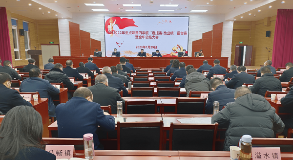 1月29日,洋县召开2022年重点项目四季度“看担当·比业绩”擂台赛暨全年总结大会。县委书记赵斌出席会议并讲话。县委副书记、县长张军主持会议。县人大常委会主任李国鸿,县政协主席路建侠,县委副书记彭军亮,县委常委刘一叶、晏莉、刘子辉、陈学宏、廖华波、苟晓斌等县级领导和各镇(街道)、相关部门单位负责人参加会议。