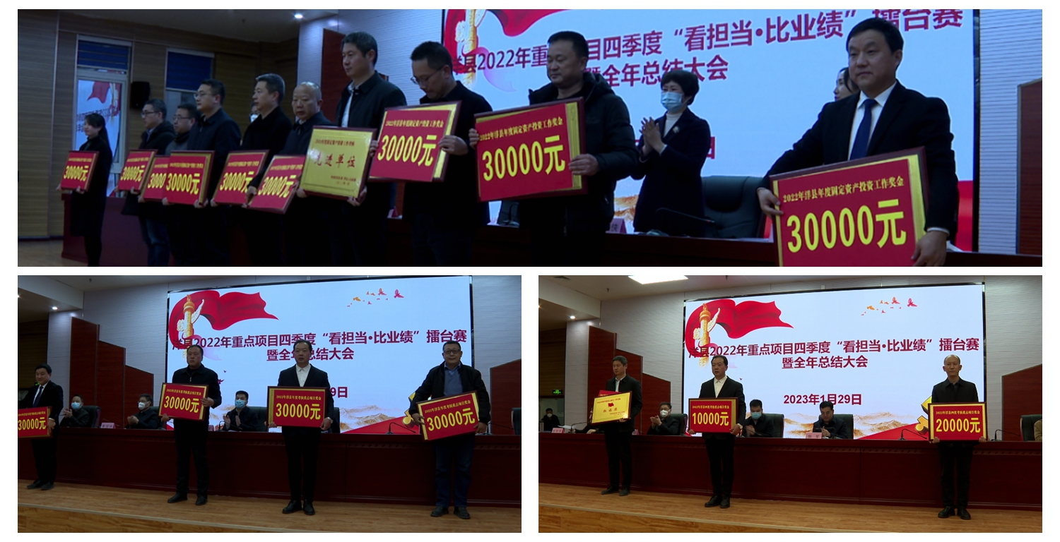 会议集体观看了2022年抓项目促投资重点项目视频;总结了2022年重点项目建设工作、安排了2023年重点项目建设工作;通报表彰了2022年四季度、年度重点项目考核排名前3名的单位和2022年固定资产投资考核先进单位。农业农村局、林业局、谢村镇围绕重点项目建设推进工作进行了交流发言。