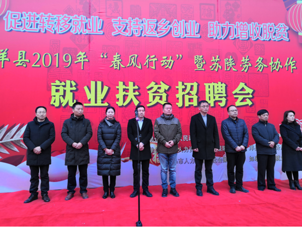 2月12日上午,洋县2019年“春风行动”暨苏陕协作招聘会开幕式在县人力资源大厦一楼大厅隆重举行。市人社局局长王平安,县委常委、常务副县长席均出席开幕式并作了重要讲话。县人社局、劳动服务局、总工会、妇联、残联、扶贫办、苏陕办及各镇办劳动保障事务所等单位领导参加了开幕式。参加此次招聘会的企业共计36家,其中:南通企业24家、本地企业12家,现场求职者达3000余人。