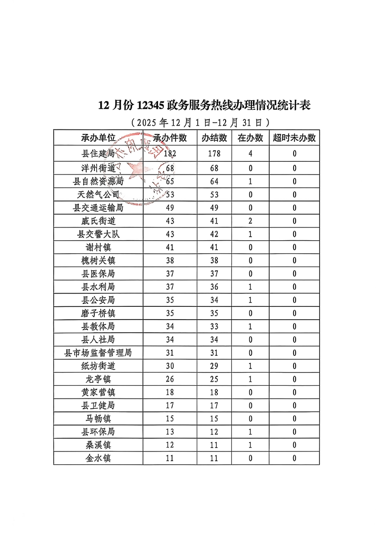2025年12月份12345政务服务热线及市(县)长信箱等群众诉求办理情况