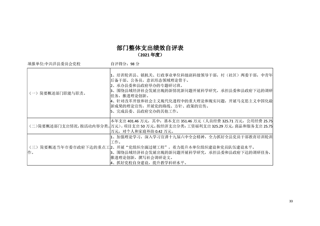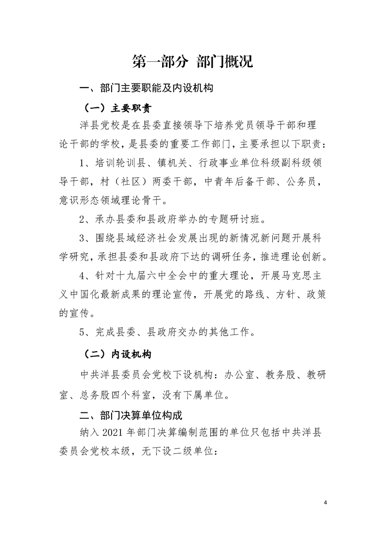 内容概述 | 洋县党校2021年度部门决算 |