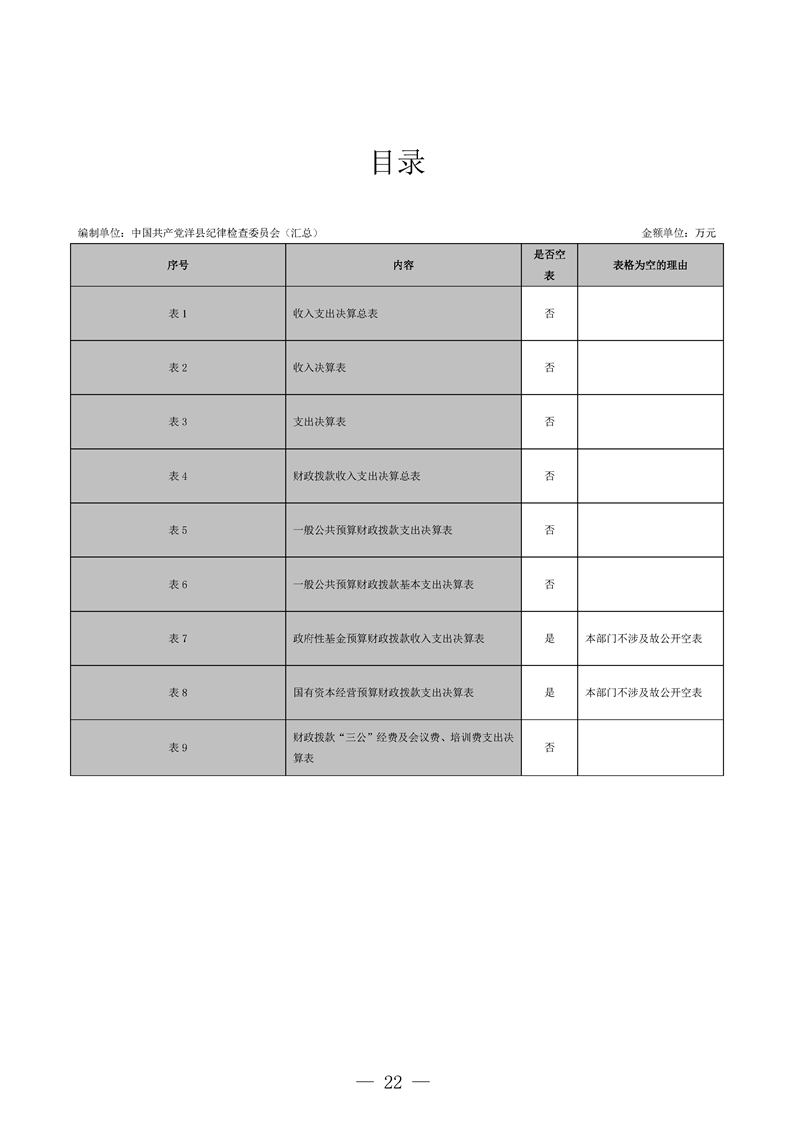 | 内容概述 | 中国共产党洋县纪律检查委员会2022年度部门决算公开 | ||||