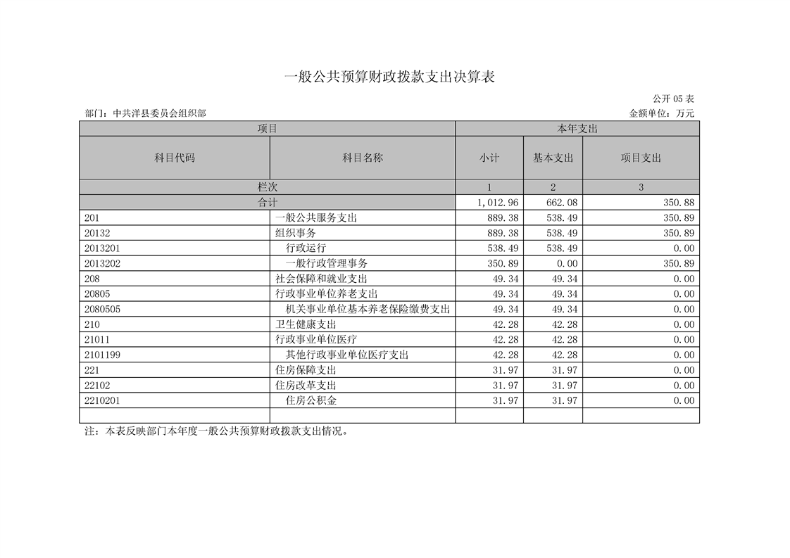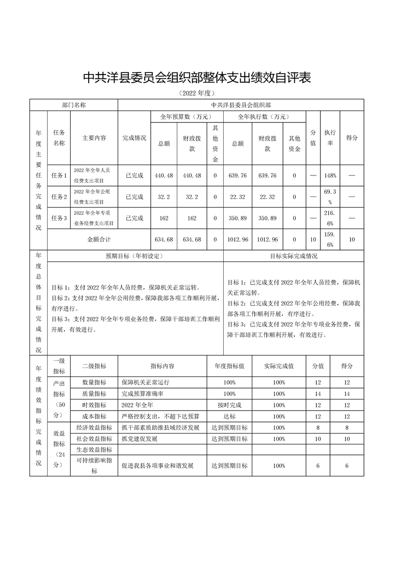 | 内容概述 | 中共洋县委员会组织部2022年决算公开 | ||||