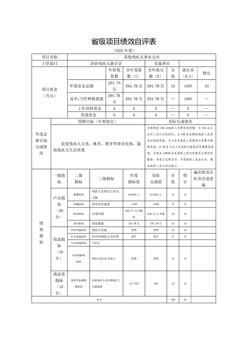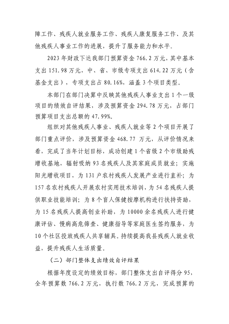 | 内容概述 | 洋县残疾人联合会2023年度部门决算公开 | ||||