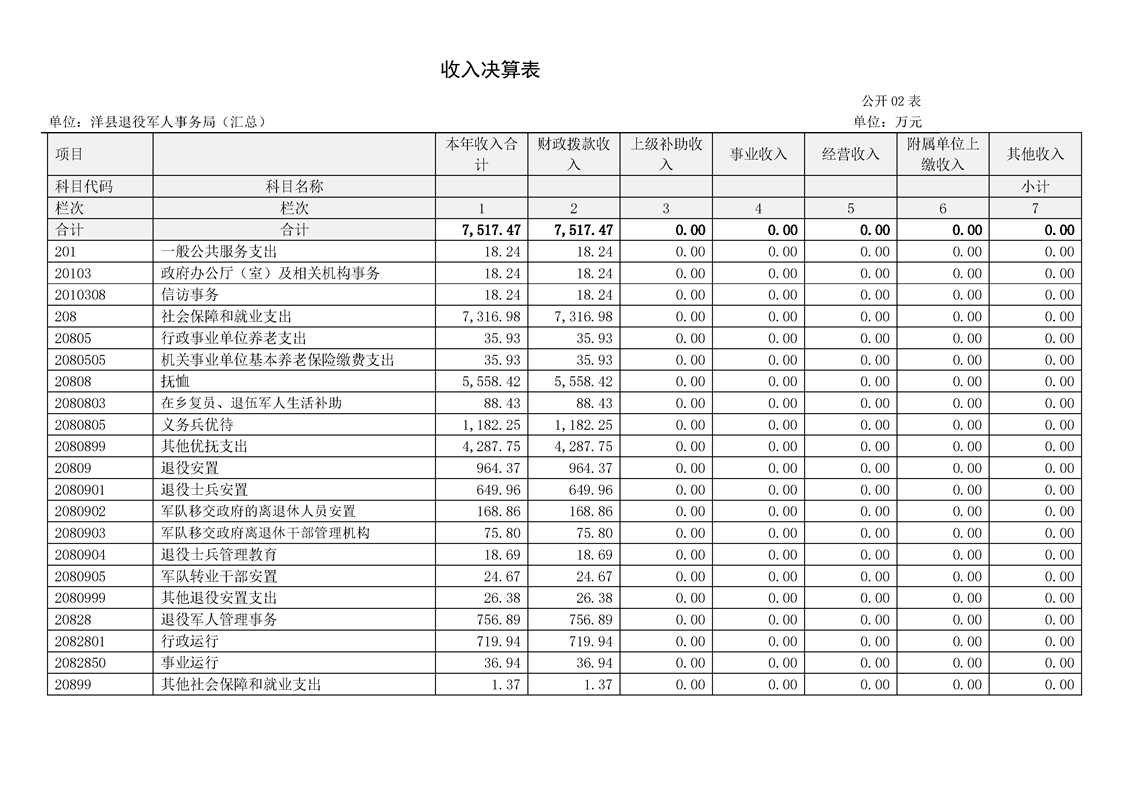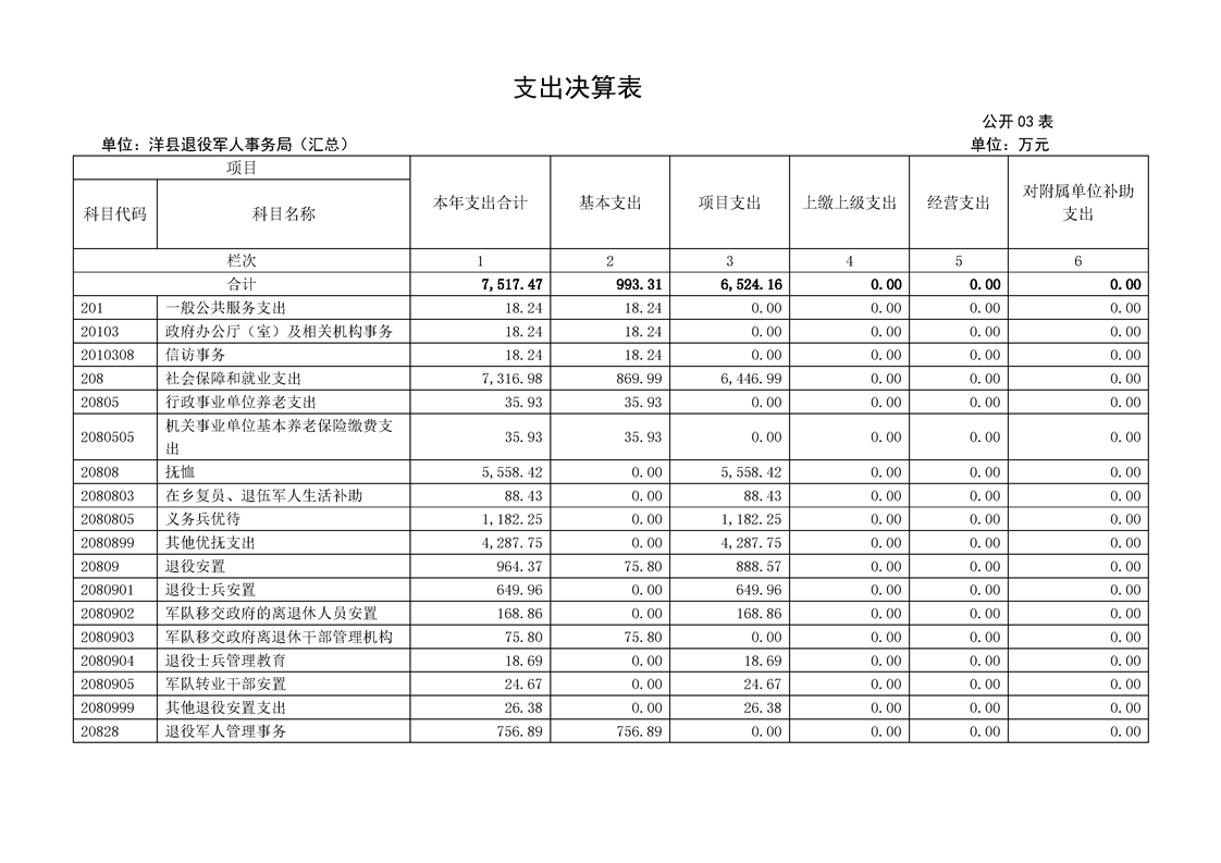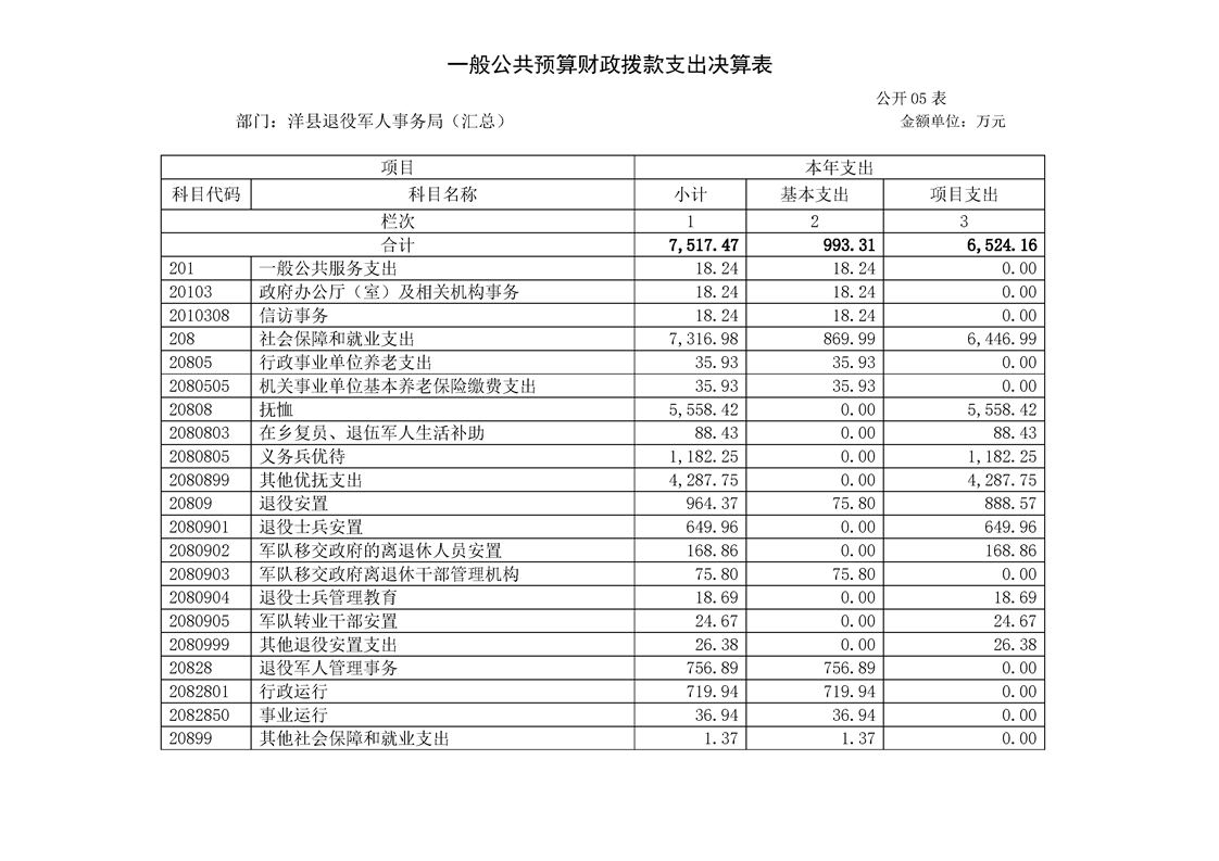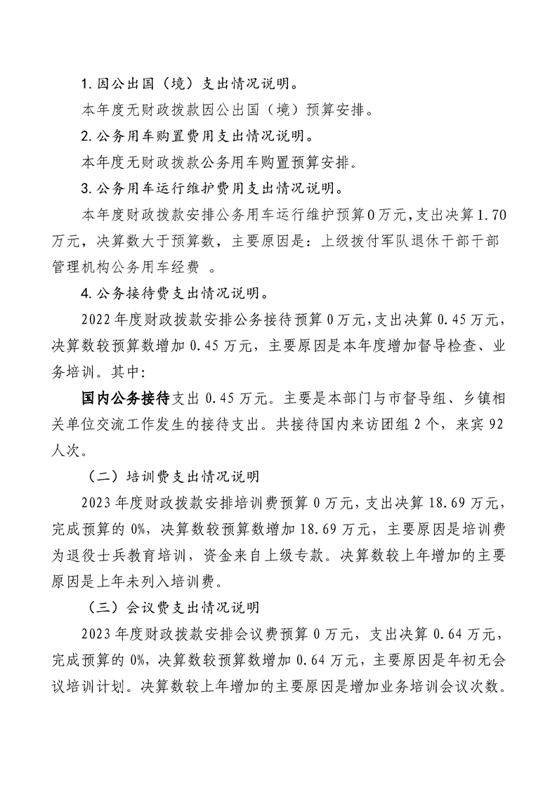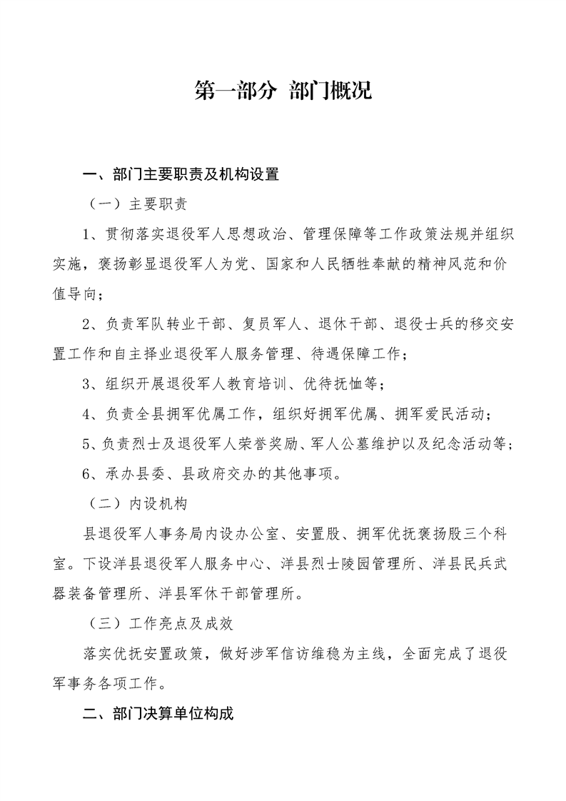 | 内容概述 | 洋县退役军人事务局2023年度部门决算公开 | ||||
