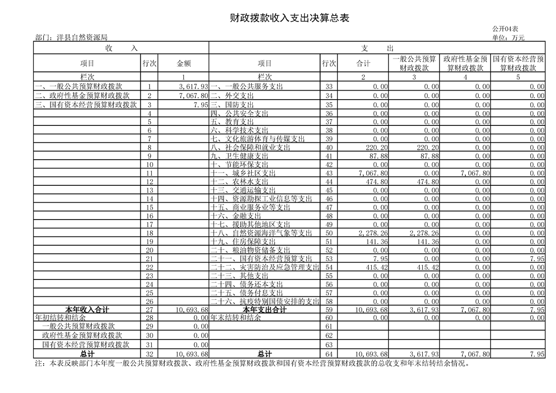 | 内容概述 | 洋县自然资源局2023年度部门决算公开 | ||||