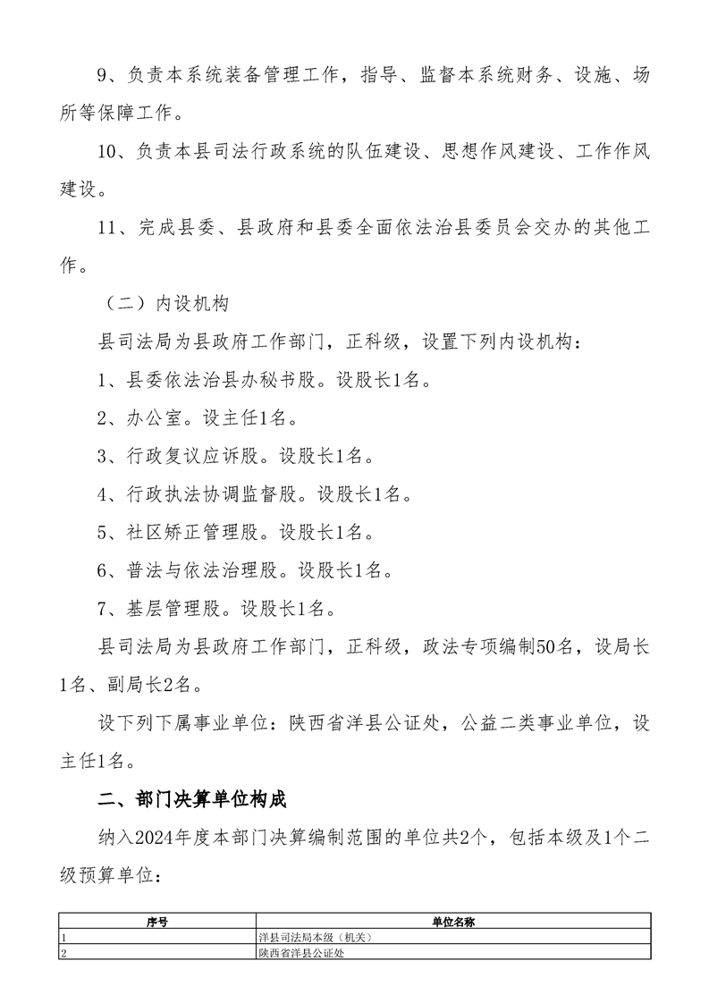 | 内容概述 | 洋县司法局2024年度部门决算 | ||||