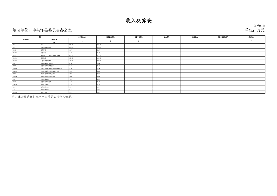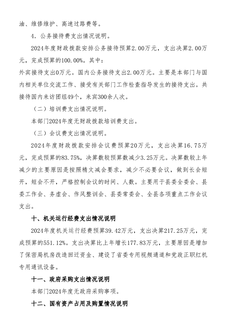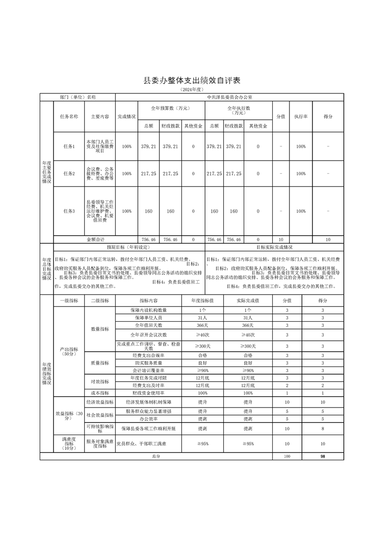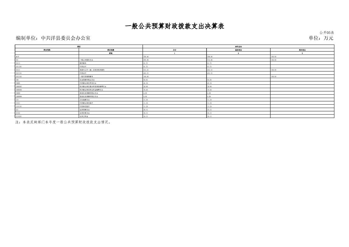 | 内容概述 | 中共洋县委员会办公室2024年度部门决算 | ||||