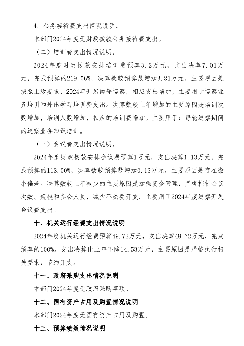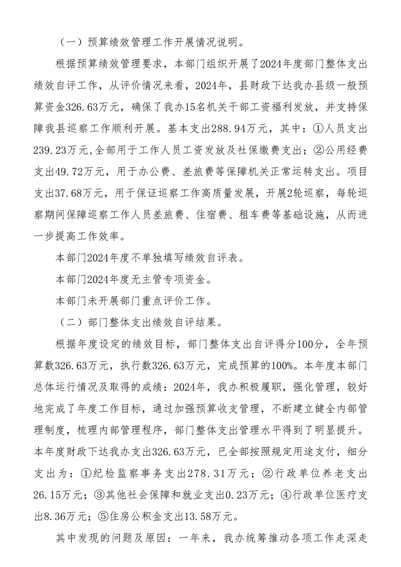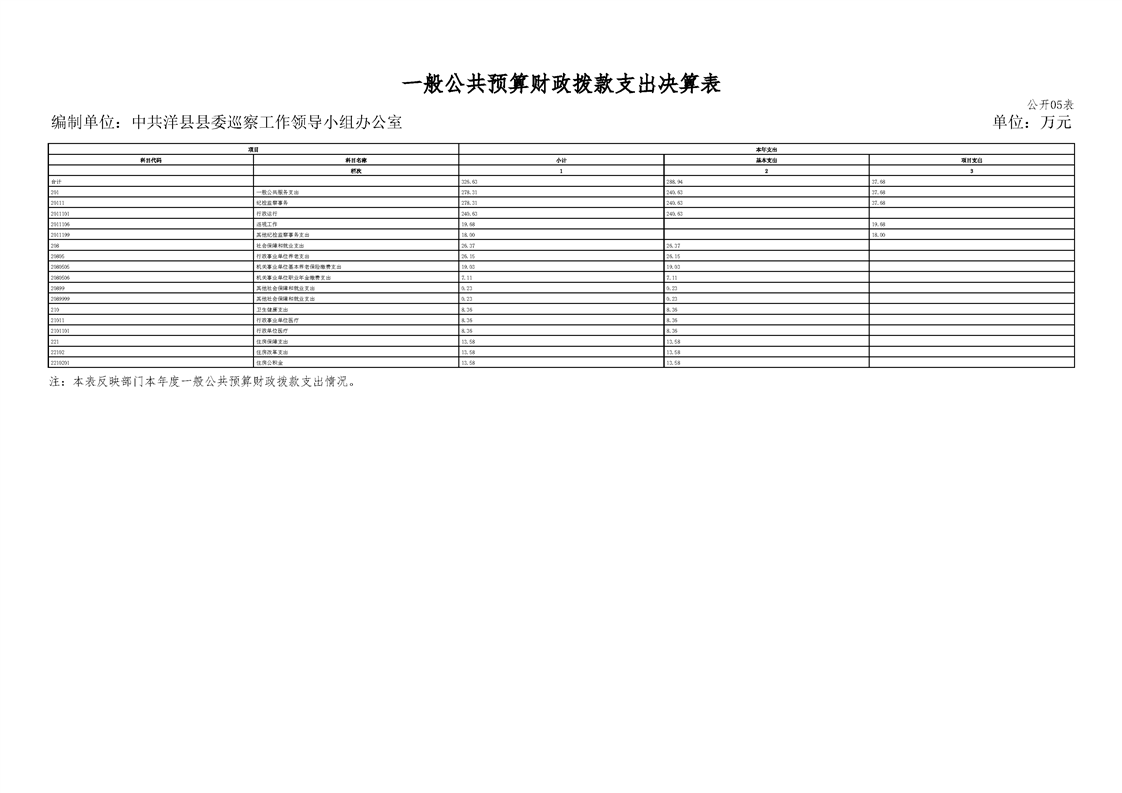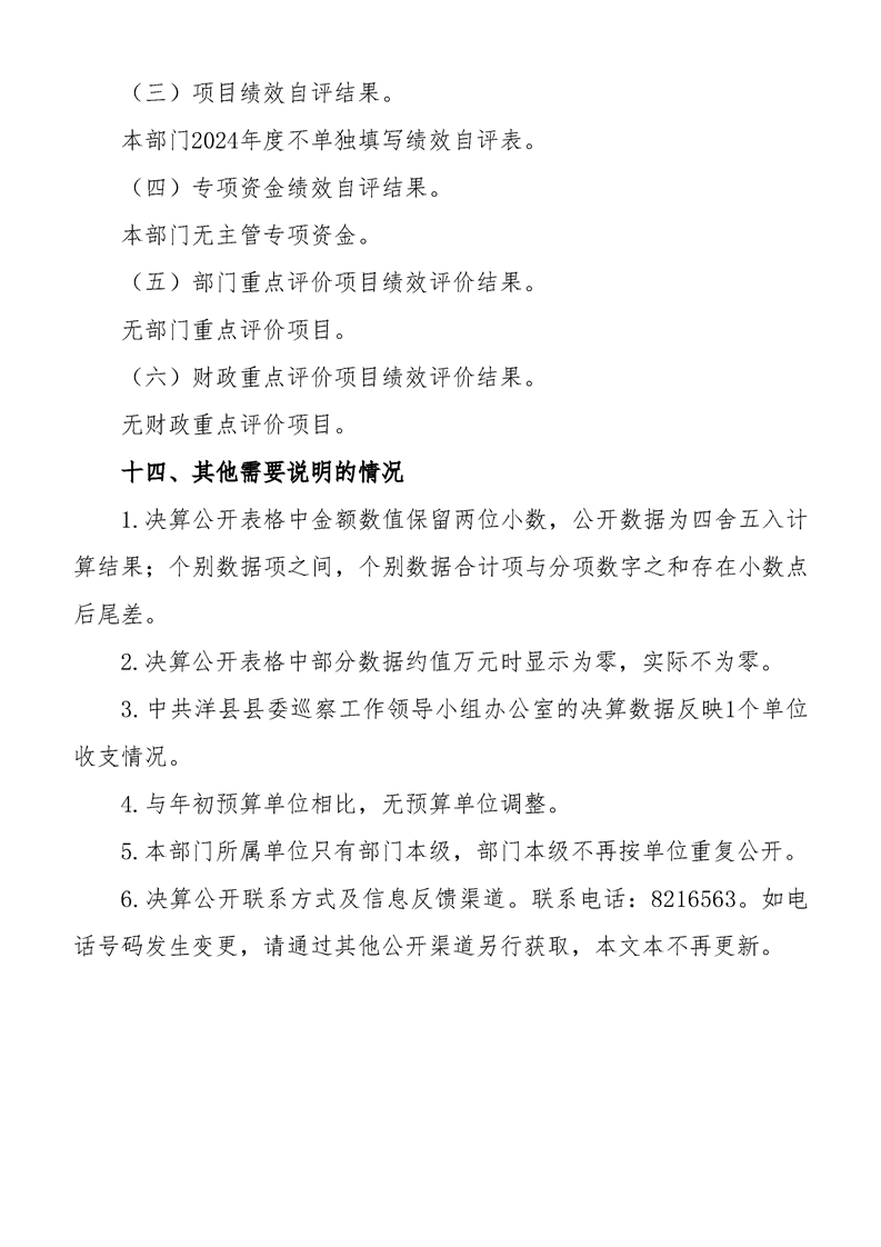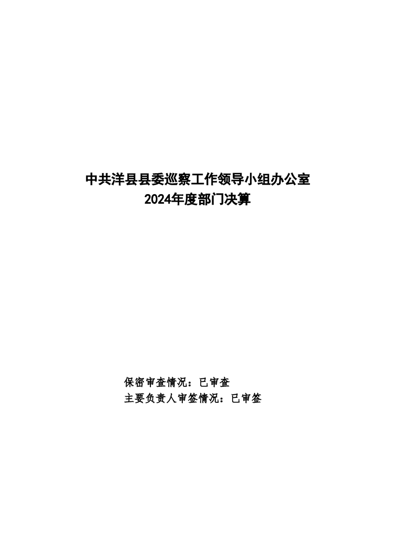 | 内容概述 | 中共洋县县委巡察工作领导小组办公室2024年度部门决算 | ||||