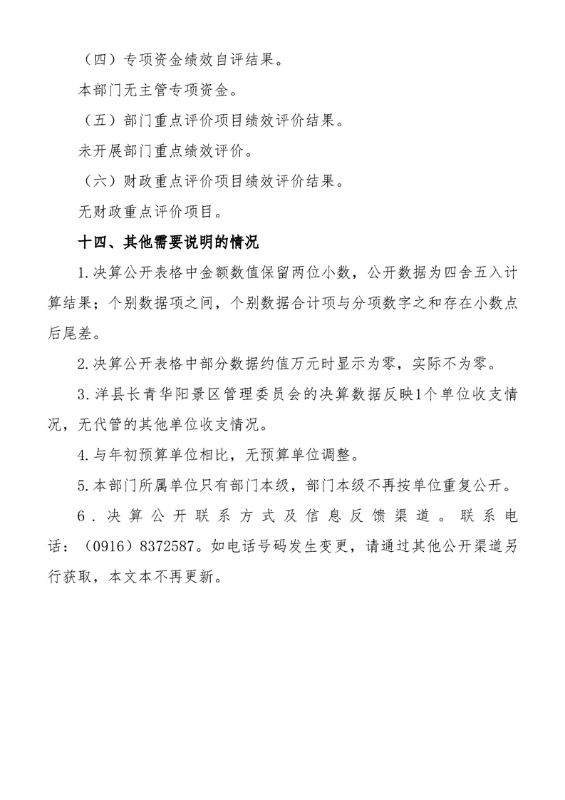 | 内容概述 | 洋县长青华阳景区管理委员会2024年度部门决算 | ||||