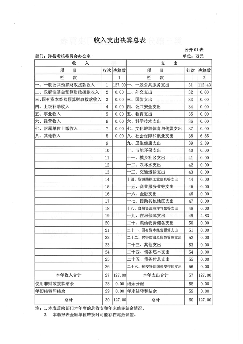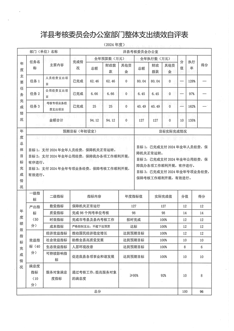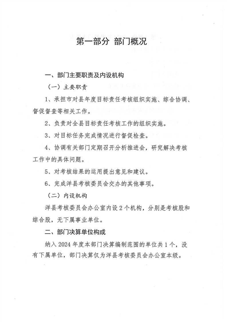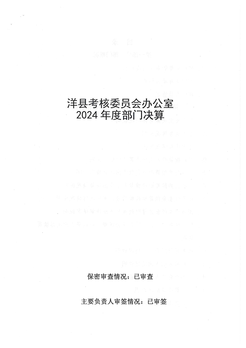 | 内容概述 | 洋县考核委员会办公室2024年度部门决算公开 | ||||