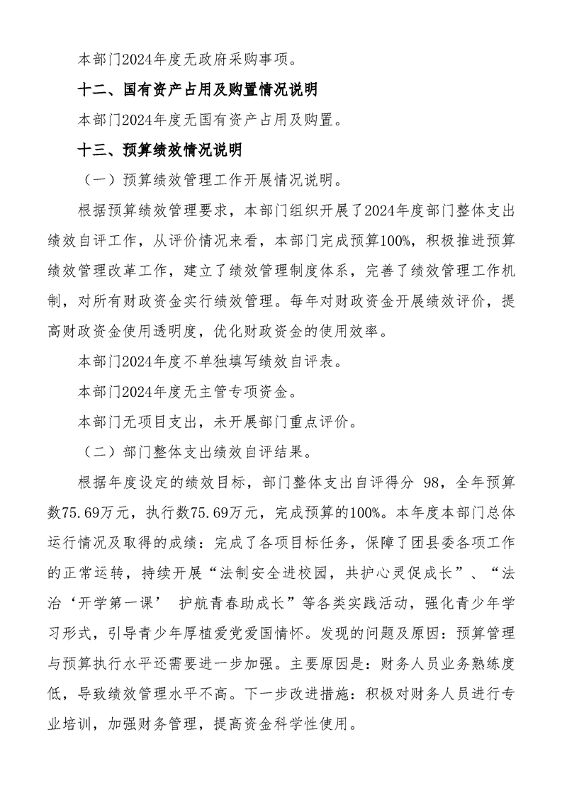 | 内容概述 | 中国共产主义青年团洋县委员会2024年度部门决算 | ||||