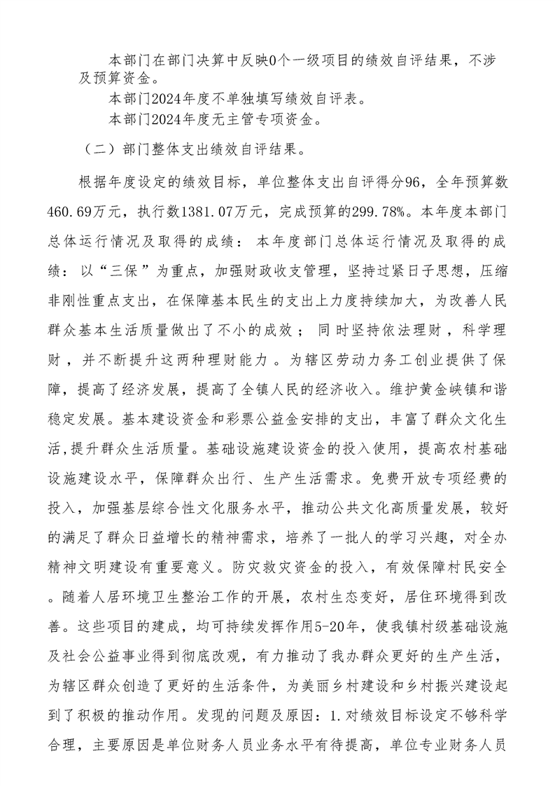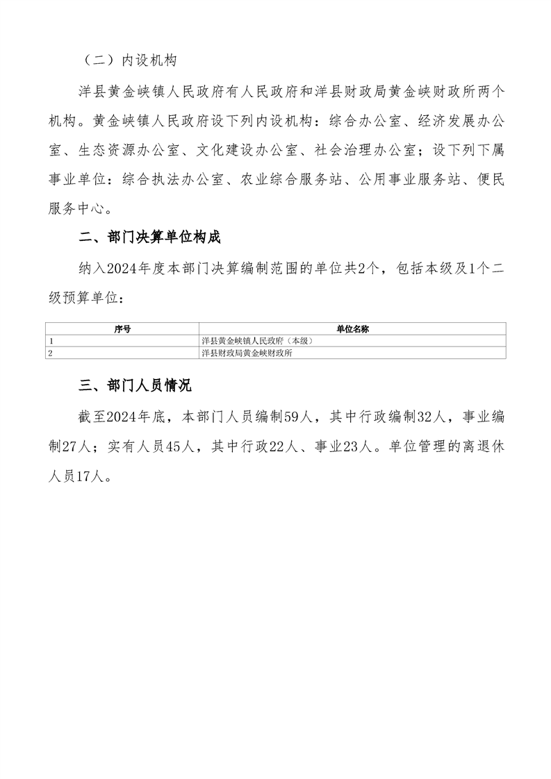 | 内容概述 | 洋县黄金峡镇人民政府2024年度部门决算 | ||||