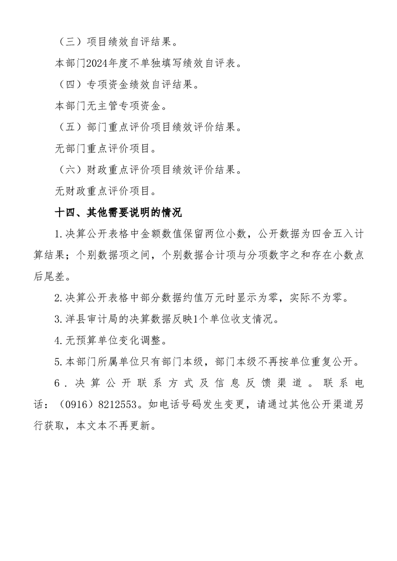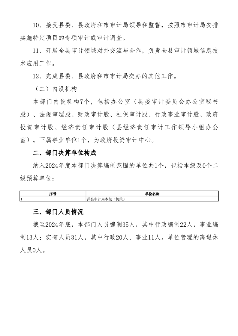 | 内容概述 | 洋县审计局2024年度部门决算 | ||||