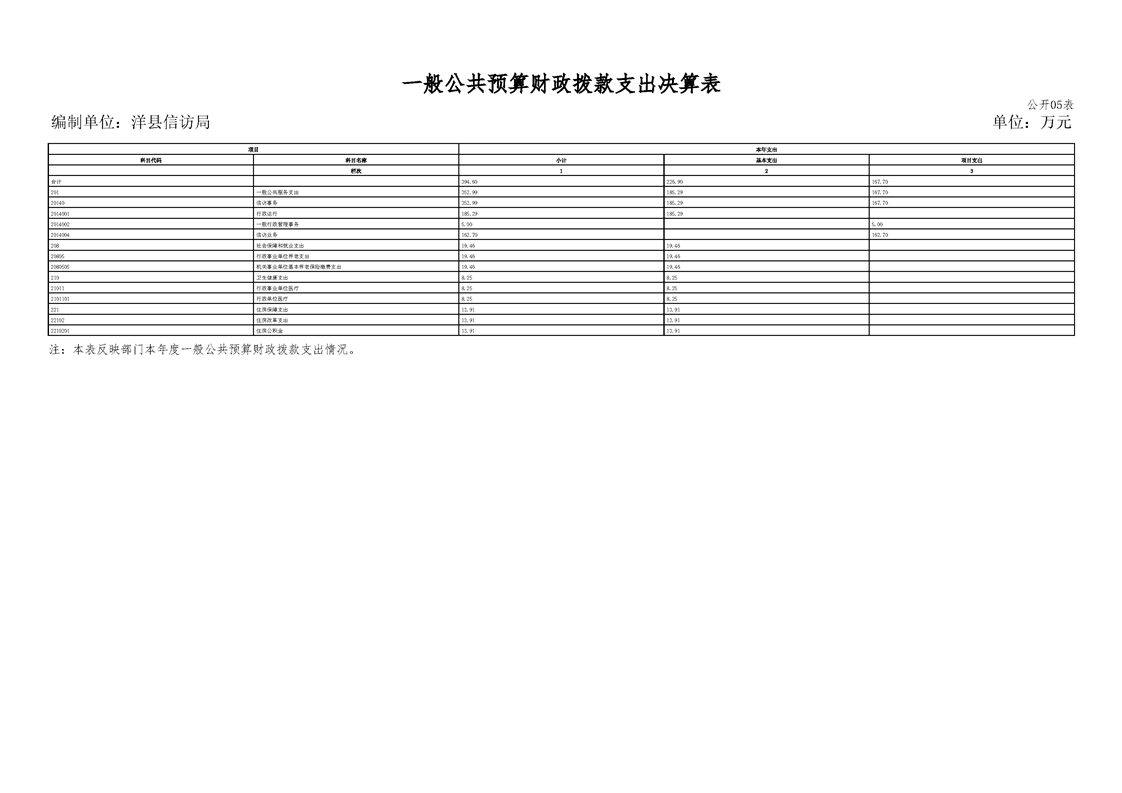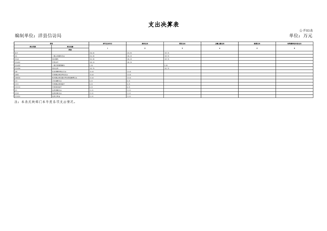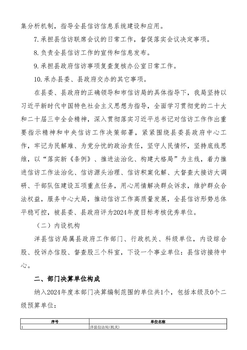 | 内容概述 | 洋县信访局2024年度部门决算 | ||||