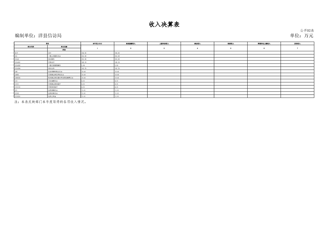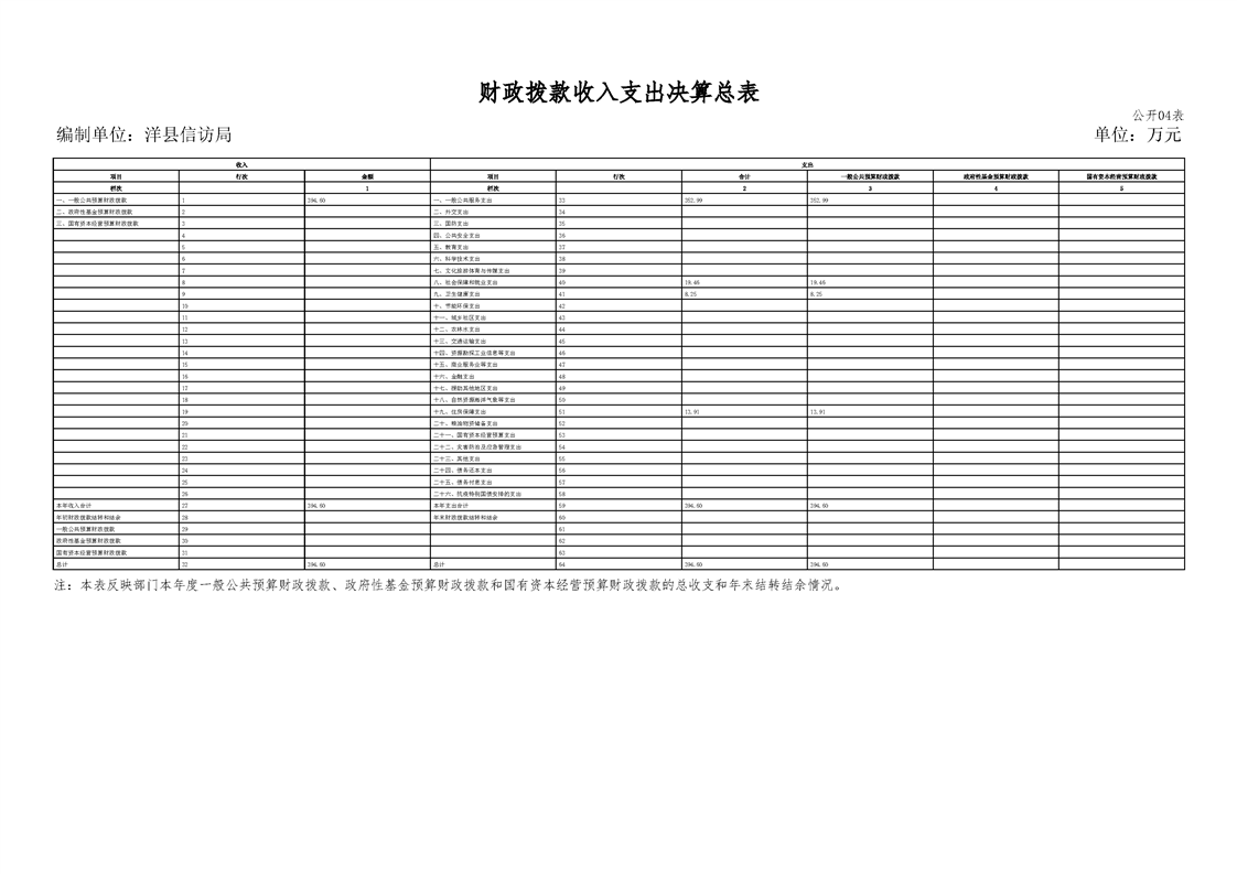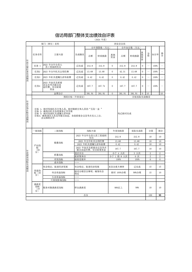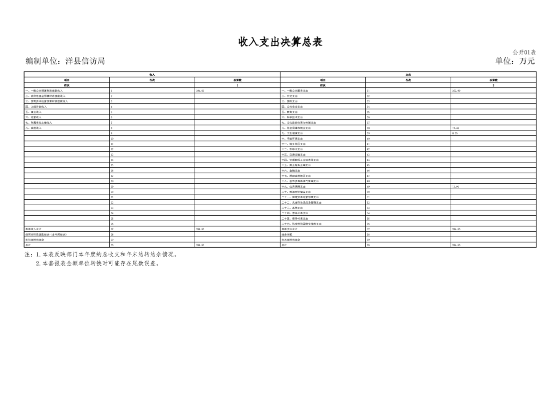 | 内容概述 | 洋县信访局2024年度部门决算 | ||||