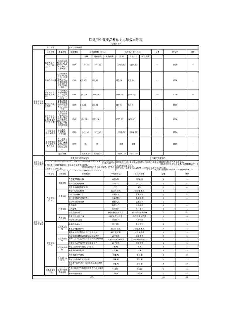 洋县卫生健康管理局2024年度部门决算