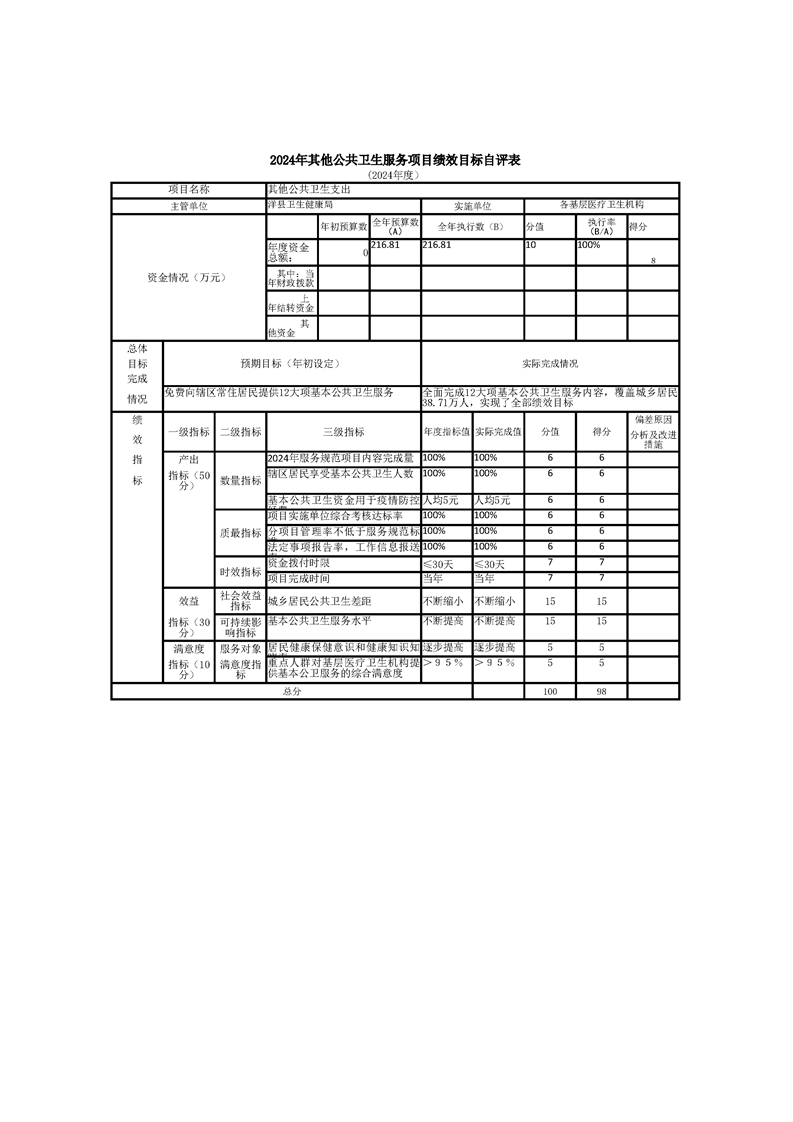 洋县洋州街道办事处中心卫生院2024年度部门决算