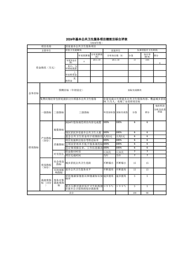 洋县马畅镇中心卫生院2024年度部门决算