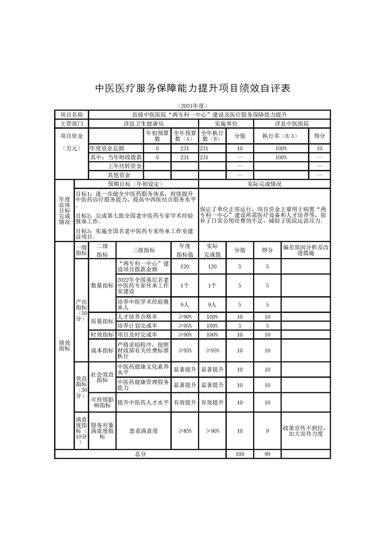 洋县中医医院2024年度部门决算