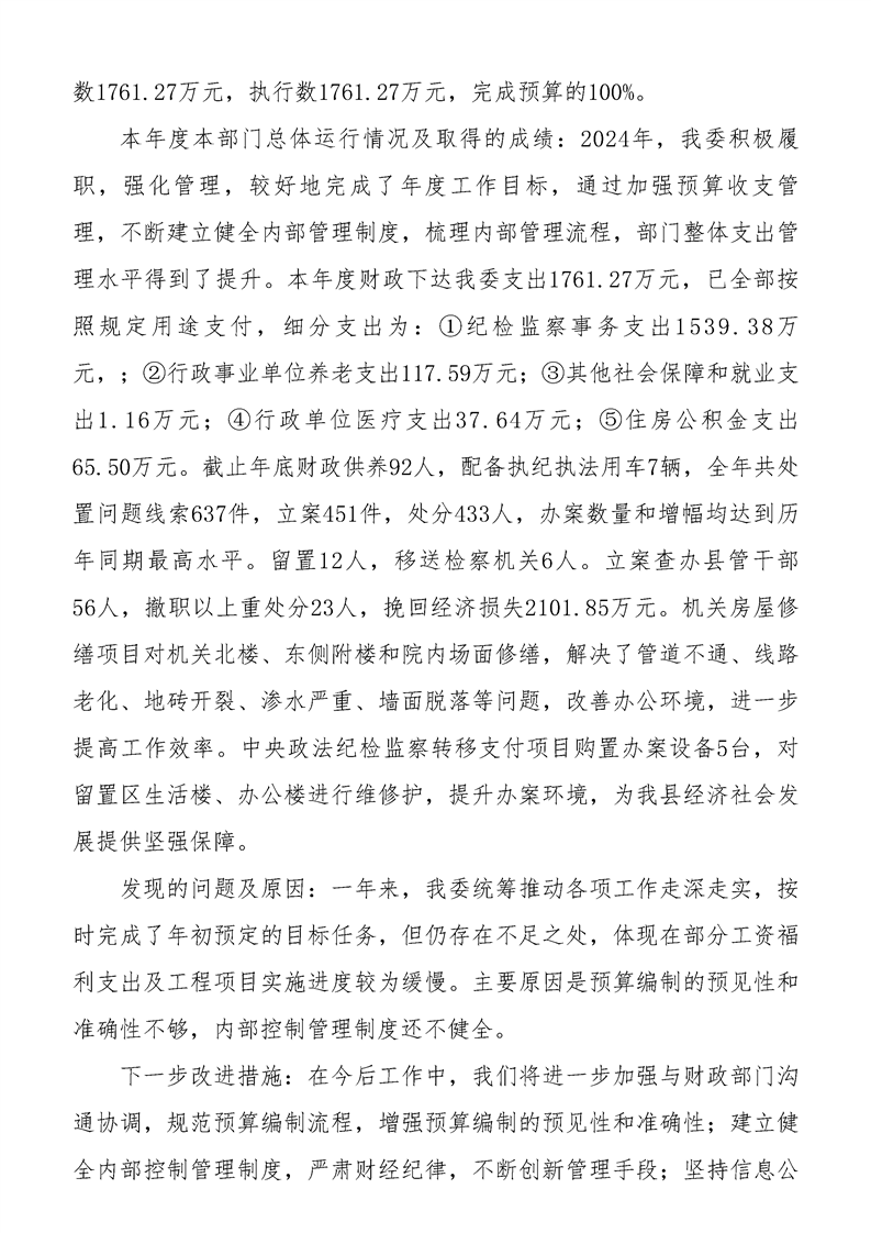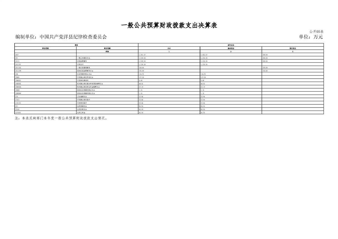 | 内容概述 | 中国共产党洋县纪律检查委员会2024年度部门决算 | ||||