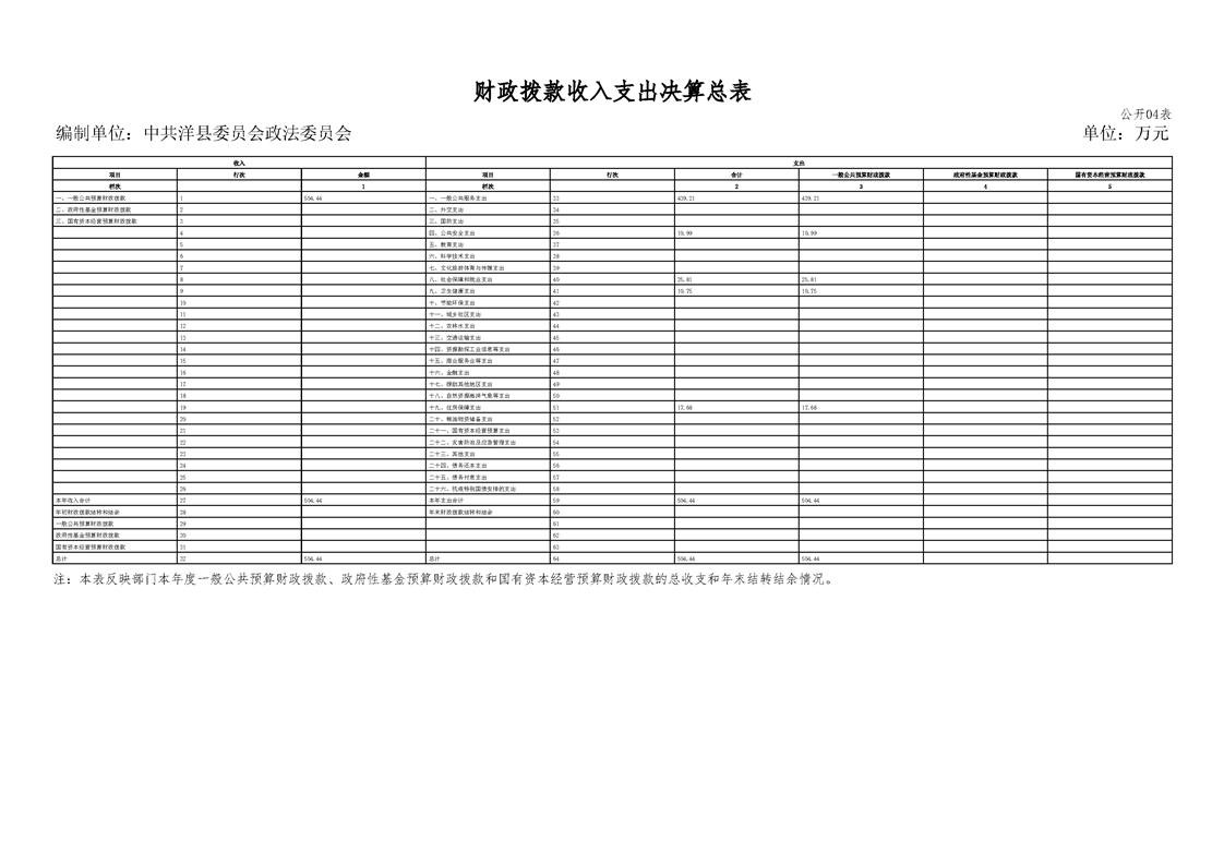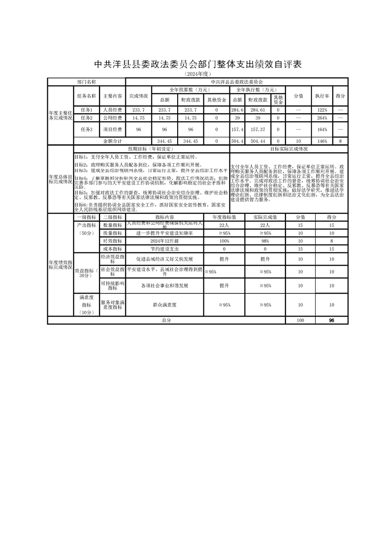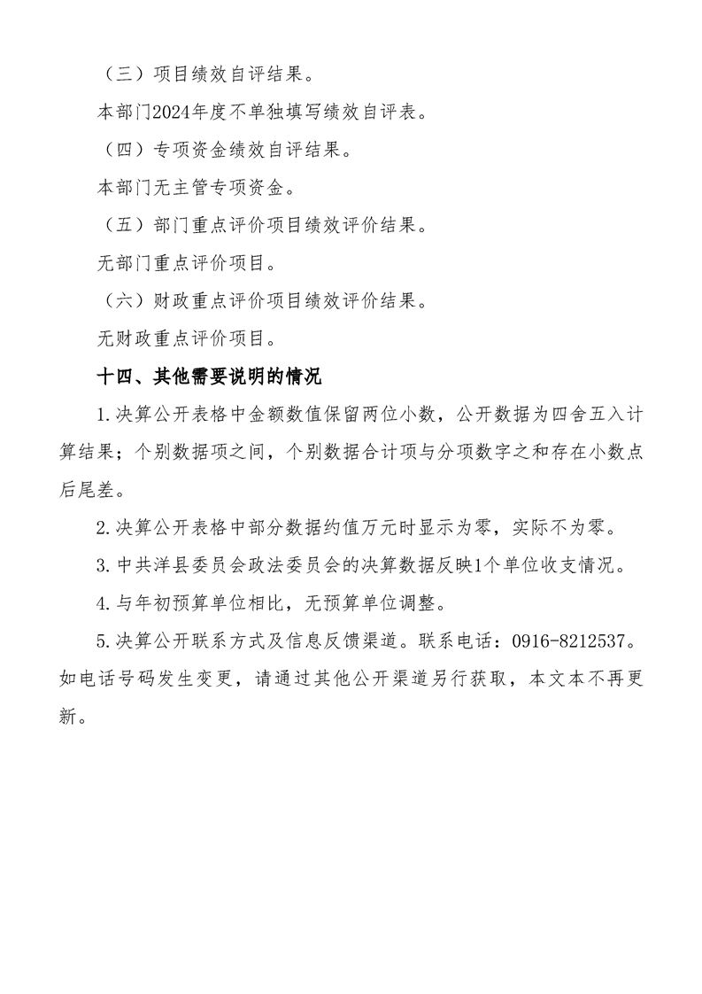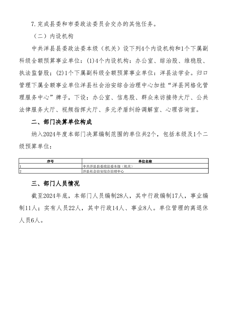 | 内容概述 | 中共洋县委员会政法委员会2024年度部门决算 | ||||