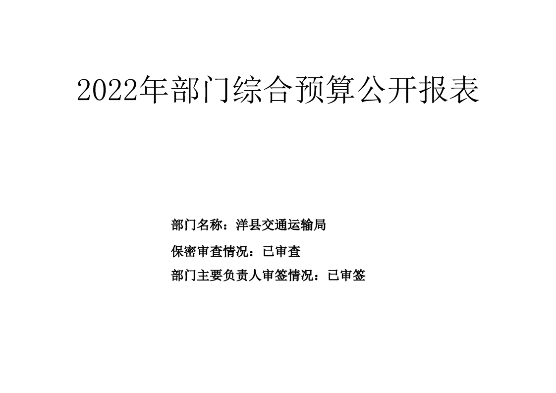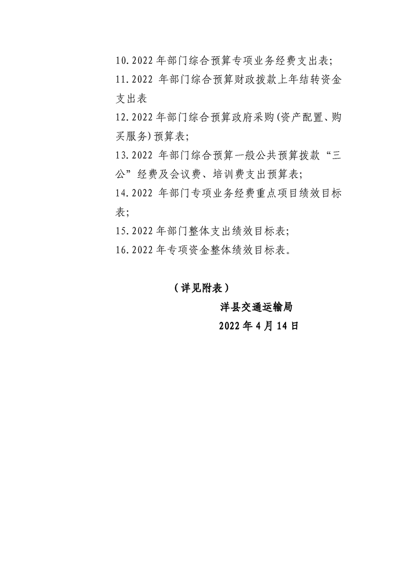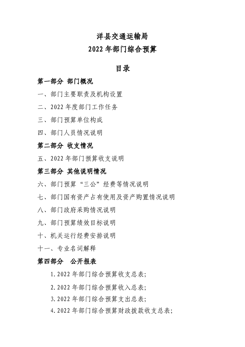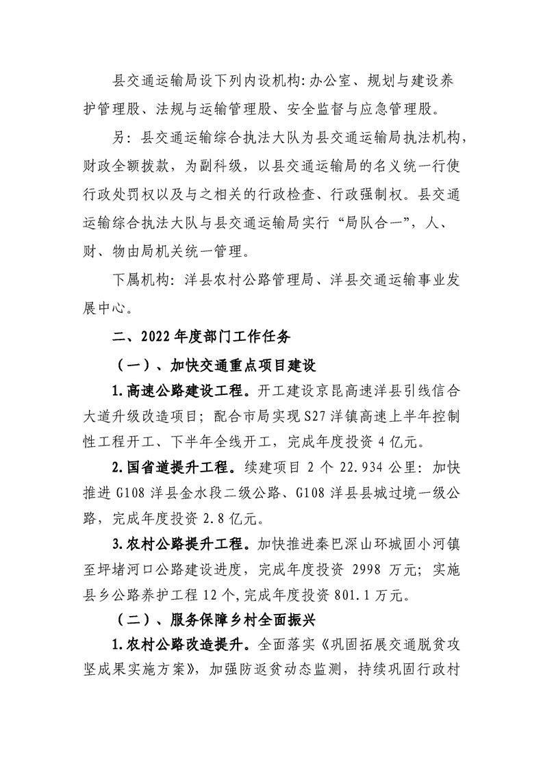 | 内容概述 | 洋县交通运输局2022年部门综合预算 | ||||