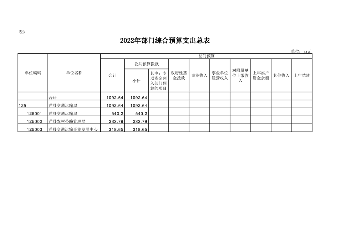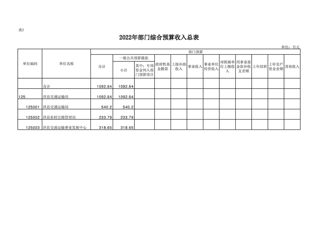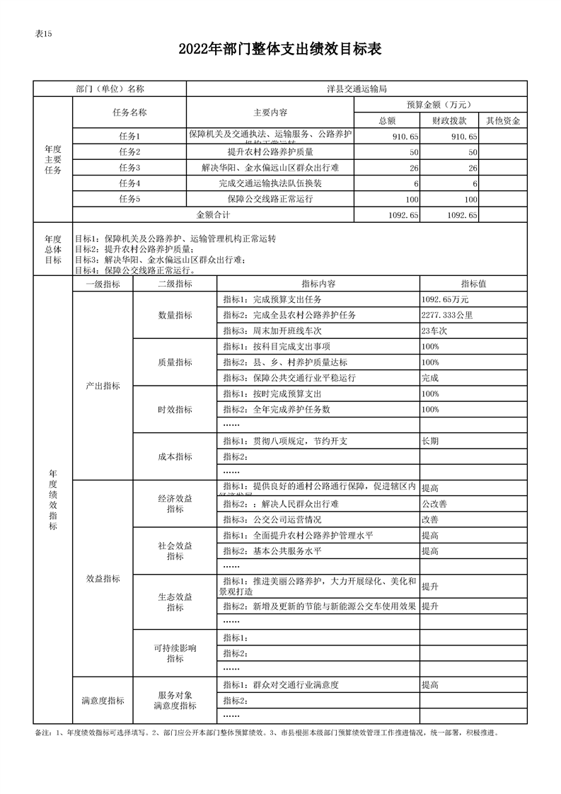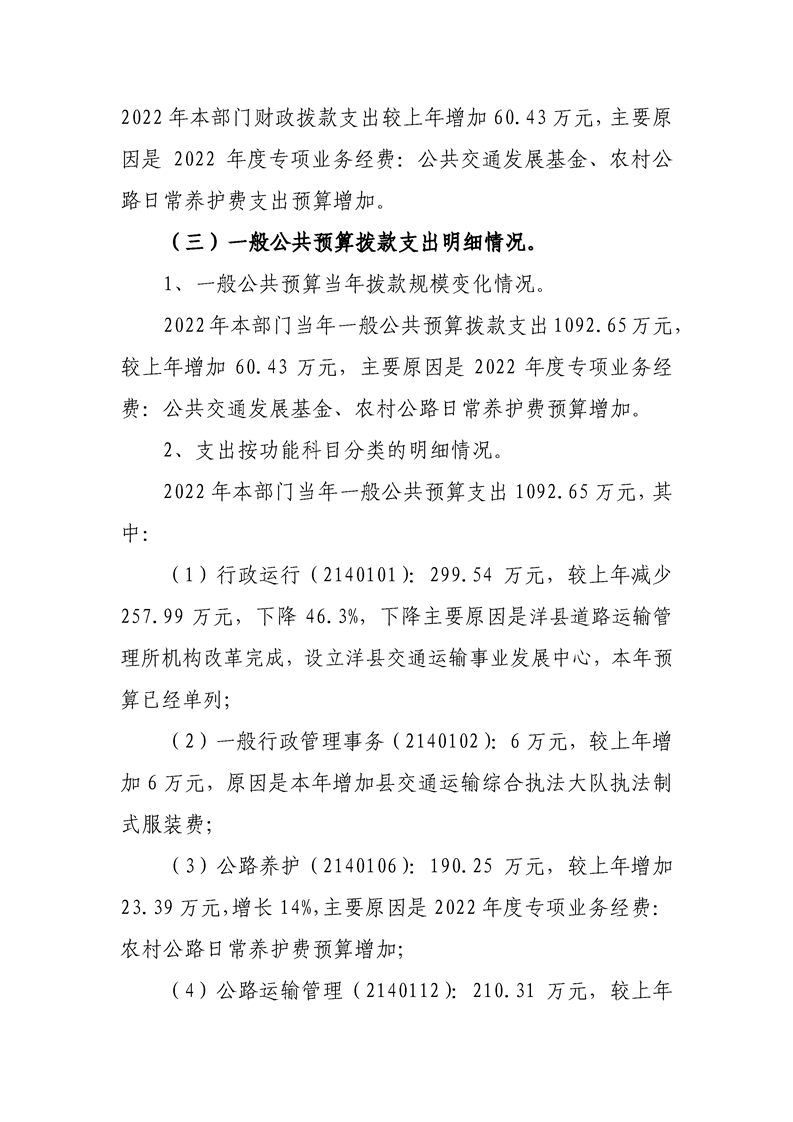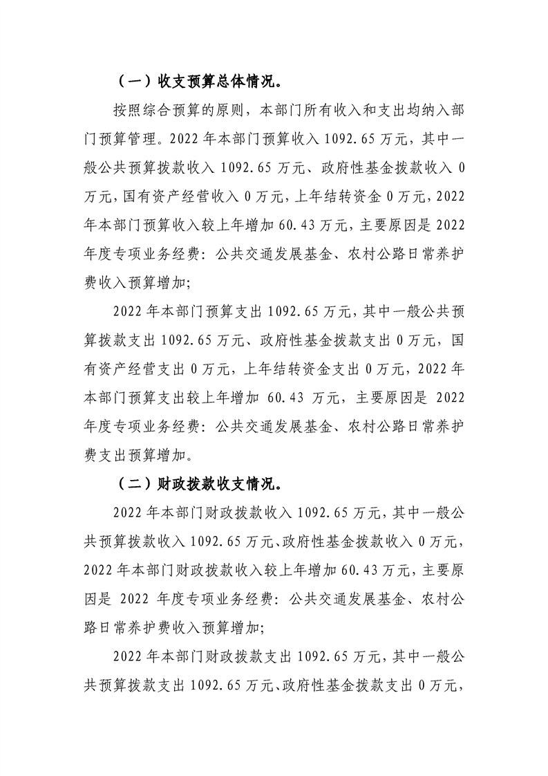 | 内容概述 | 洋县交通运输局2022年部门综合预算 | ||||