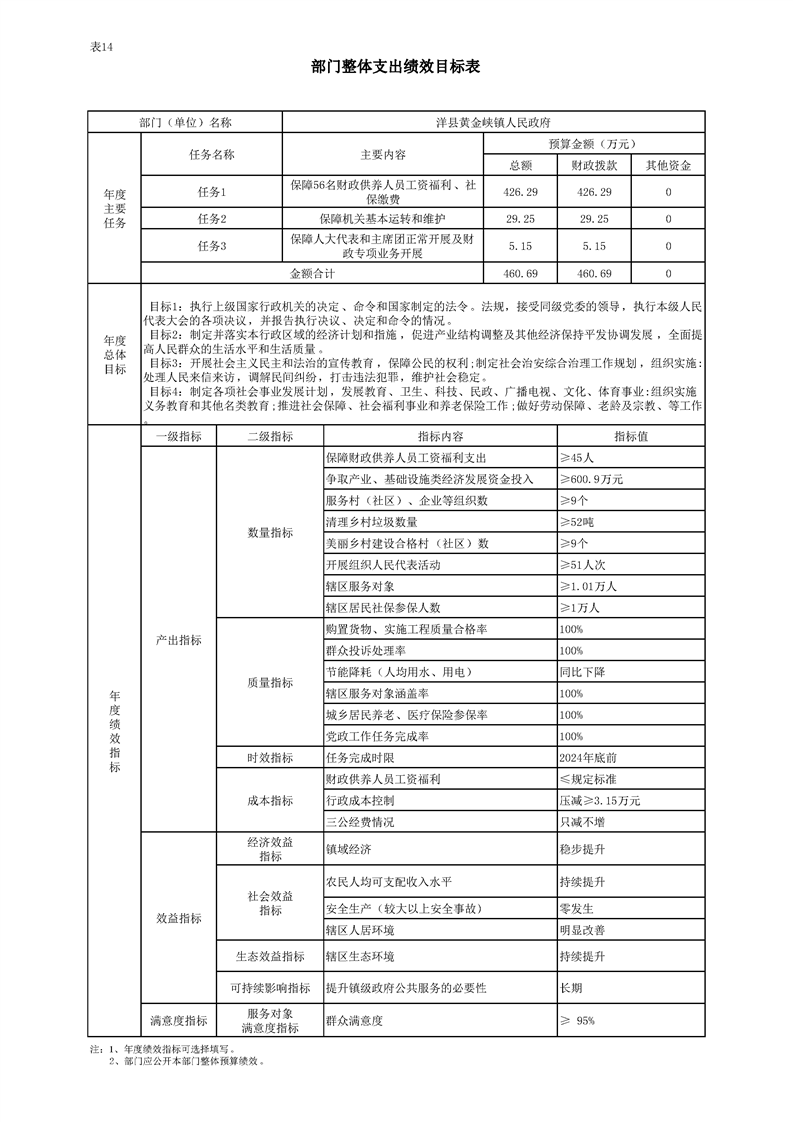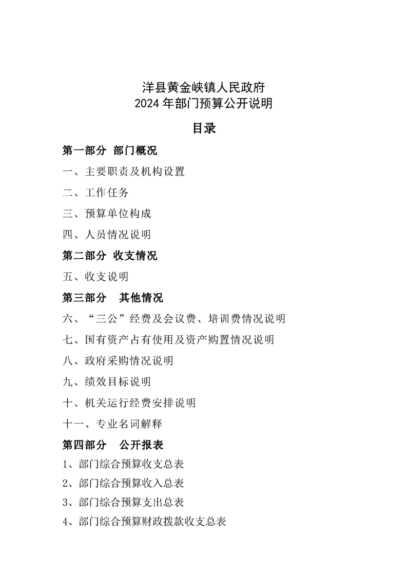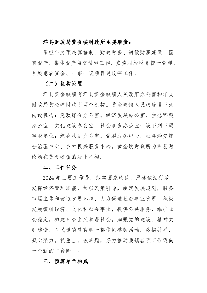 内容概述 | 洋县黄金峡镇2024年部门预算公开 |