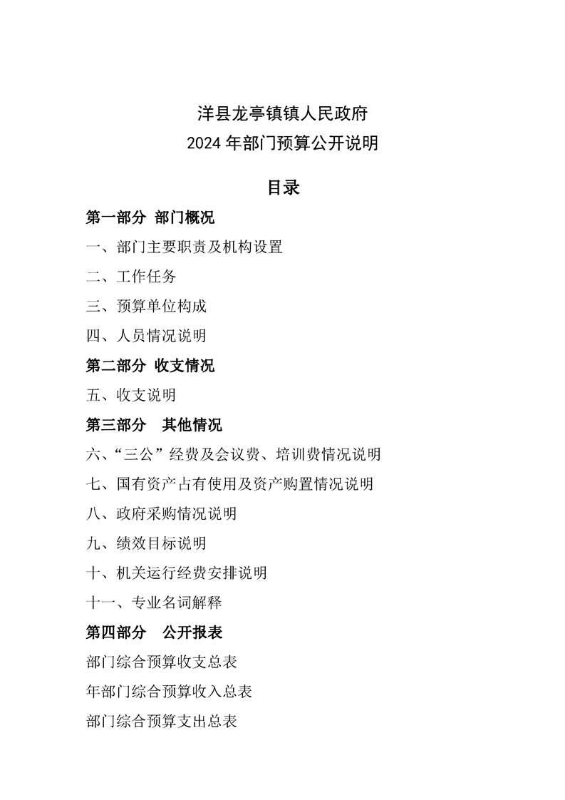 内容概述 | 洋县龙亭镇2024年部门预算公开 |