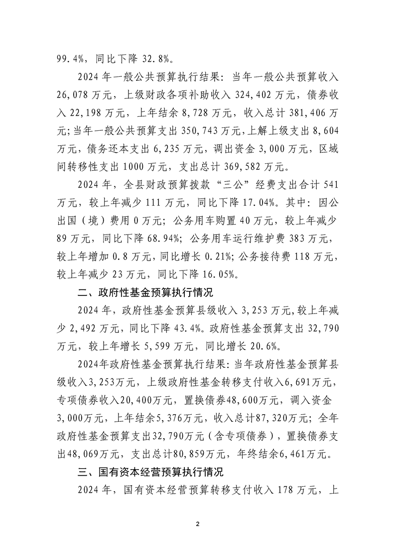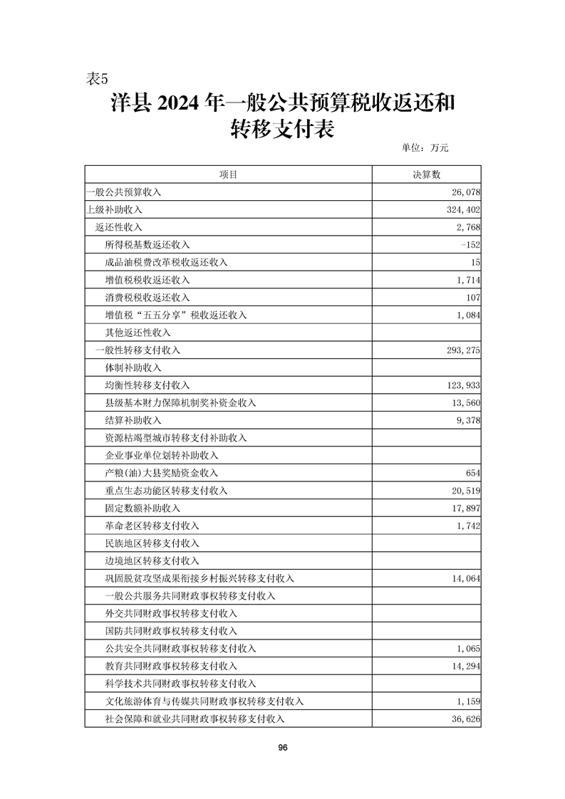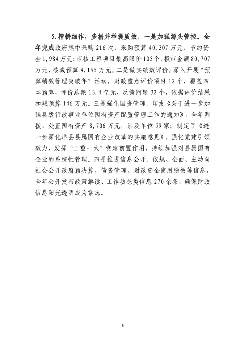 | 内容概述 | 洋县人民政府关于2024年财政决算情况的报告 | ||||