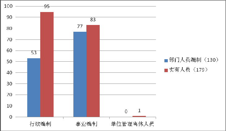 截止2017年底,本部门人员编制130人,其中行政编制53人、事业编制77人;实有人员179人,其中行政95人、事业83人。单位管理的离休人员1人。