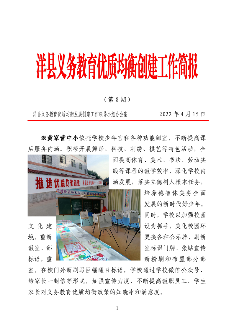 洋县义务教育优质均衡创建工作简报(第八期)
