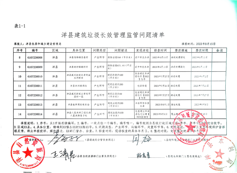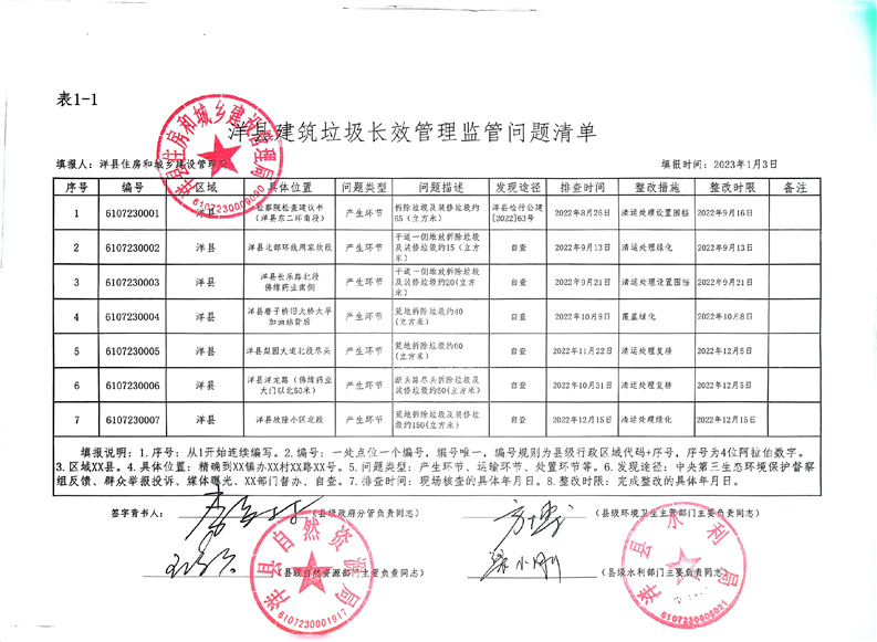 洋县建筑垃圾长效管理监管问题清单