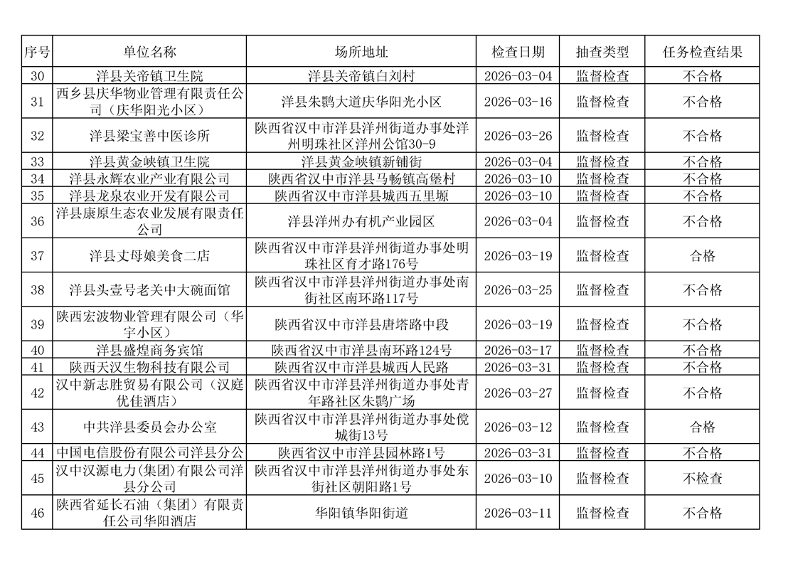 洋县消防救援局2026年3月“双随机、一公开”监督检查情况公示