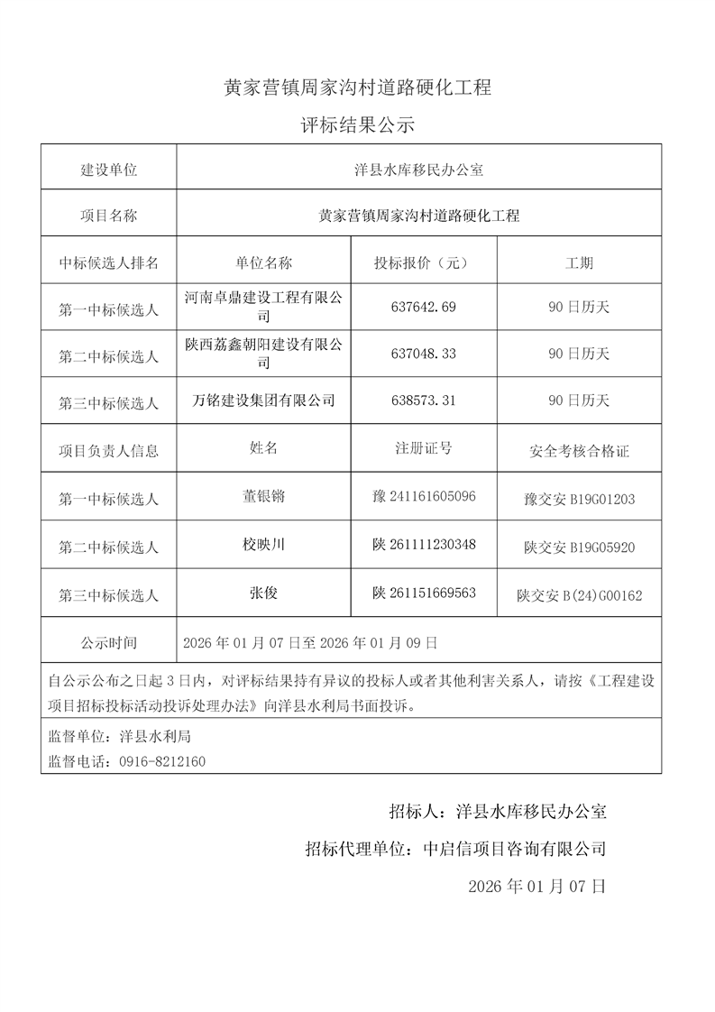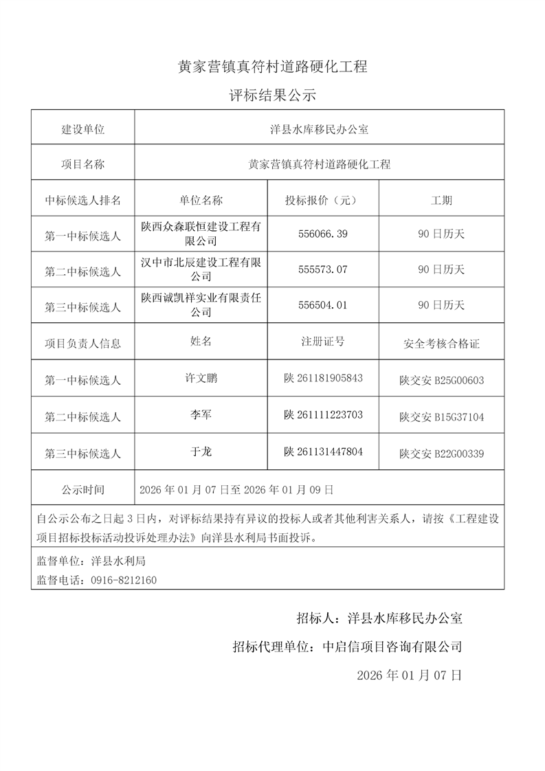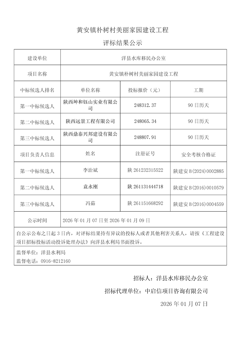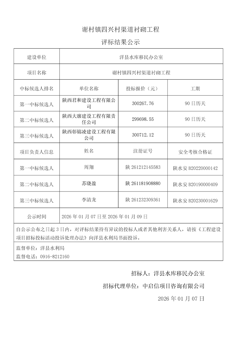 | 内容概述 | 桑溪镇龙岗村,谢村镇五间村、东坡村,华阳镇小华阳村、华阳村,黄金峡镇杨庄村,黄家营镇周家沟村,纸坊街道办事处清凉村,黄家营镇真符村道路硬化工程;溢水镇花园村水毁道路防护工程;黄安镇何家村白改黑工程;黄安镇张堡村、闫堡村、朴树村,槐树关镇茶坊村,洋州街道办东咀村美丽家园建设工程;谢村镇谢村村、四兴村渠道衬砌工程;2025年第三批中央水库移民扶持基金项目监理服务评标结果公示 | ||||