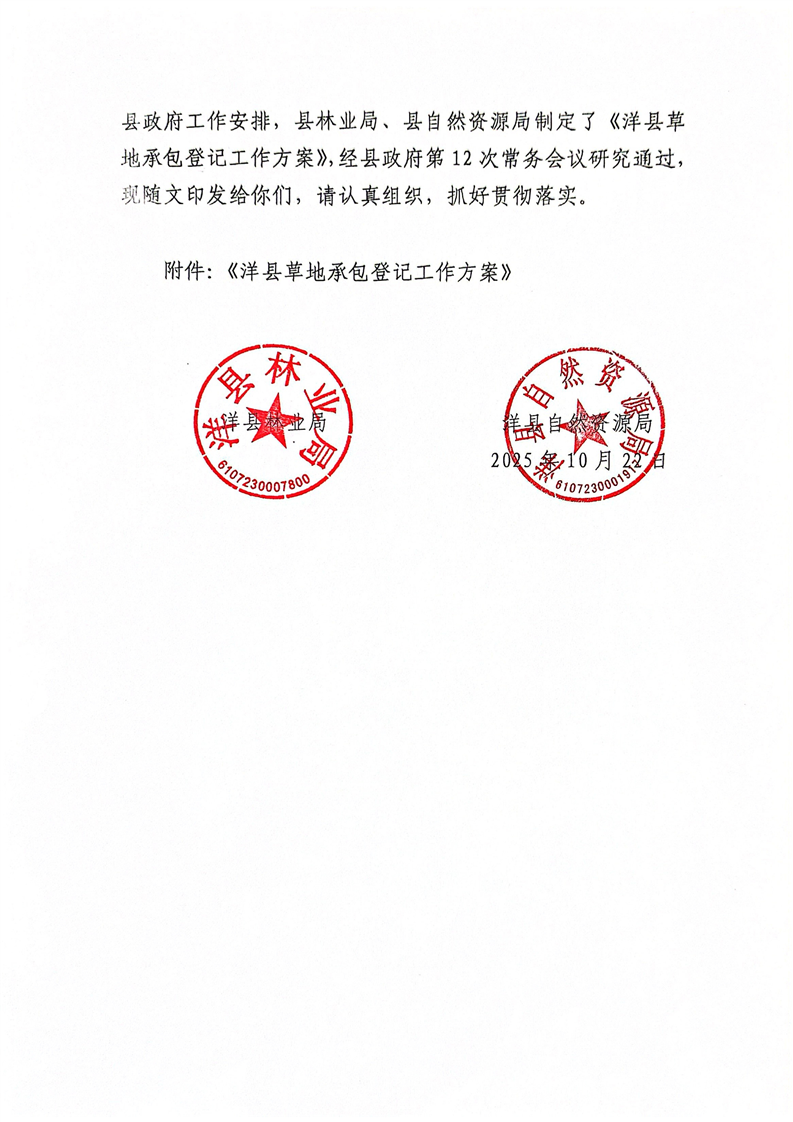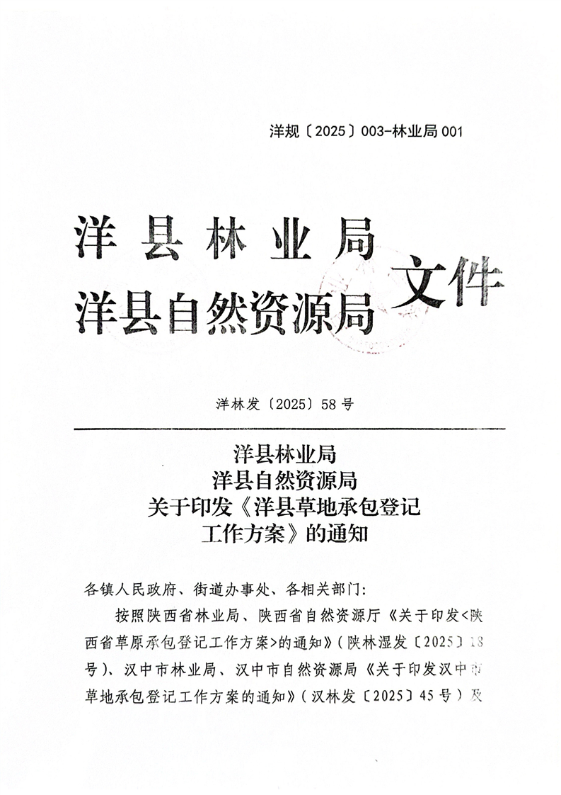 | 内容概述 | 洋规(2025〕003-林业局001 关于印发《洋县草地承包登记工作方案》的通知 | ||||