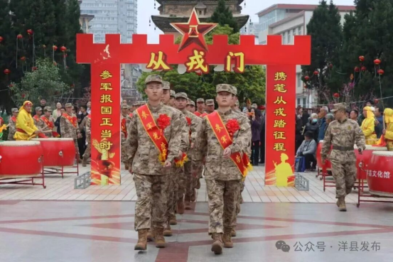 3月12日,洋县2026年上半年欢送新兵入伍暨庆送立功喜报仪式在开明广场举行。县人大常委会主任李国鸿,县政协主席路建侠,县委常委、政法委书记王永红,县委常委、常务副县长霍波等领导与相关部门负责人、新兵及立功军人家属代表一起参加了活动。