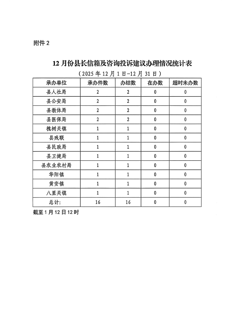 2025年12月份12345政务服务热线及市(县)长信箱等群众诉求办理情况