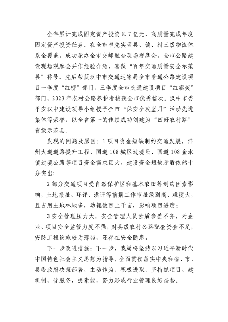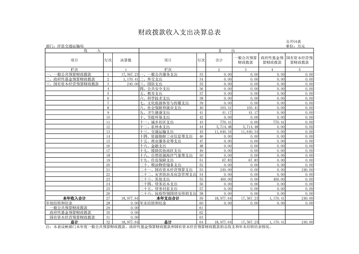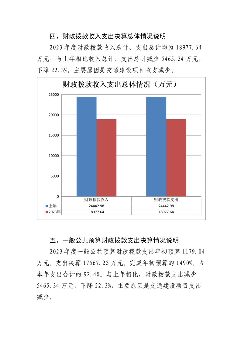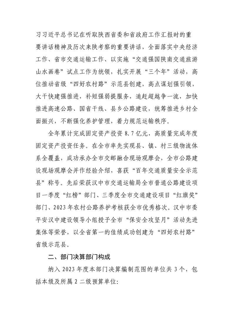 | 内容概述 | 洋县交通运输局2023年度部门决算公开 | ||||
