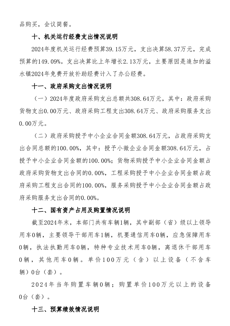 | 内容概述 | 洋县溢水镇人民政府2024年度部门决算 | ||||